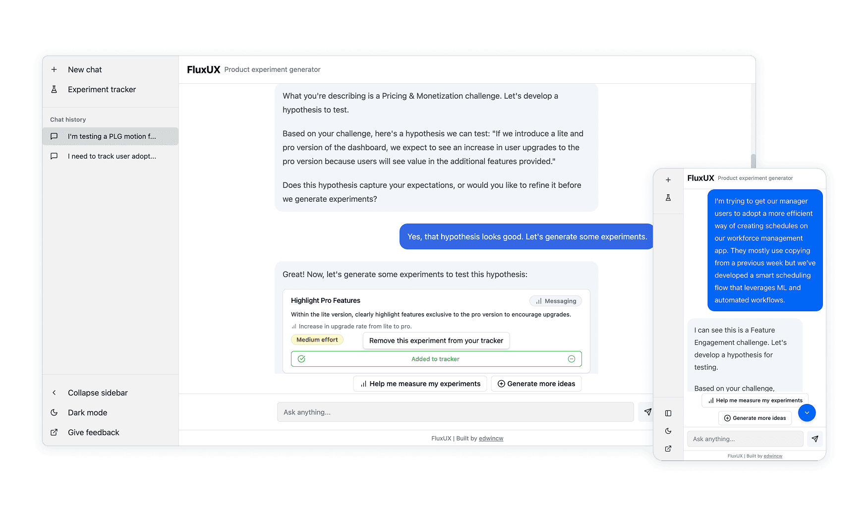 FluxUX is an AI-powered experiment generator for UX practitioners. Describe a design challenge, and it suggests structured experiments to test potential solutions.